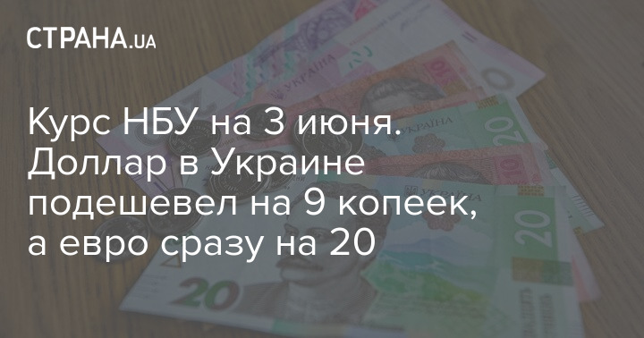Национальный банк Украины в четверг, 3 июня, установил новый официальный курс гривны по отношению к иностранным валютам. По сравнению с предыдущим рабочим днем доллар и евро упали в цене.