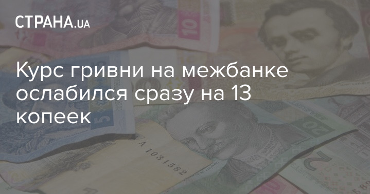 Курс гривни на межбанке ослабился сразу на 13 копеек