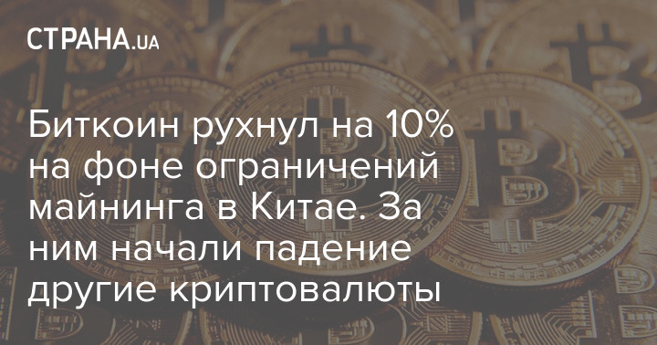 Биткоин рухнул на 10% на фоне ограничений майнинга в Китае. За ним начали падение другие криптовалюты