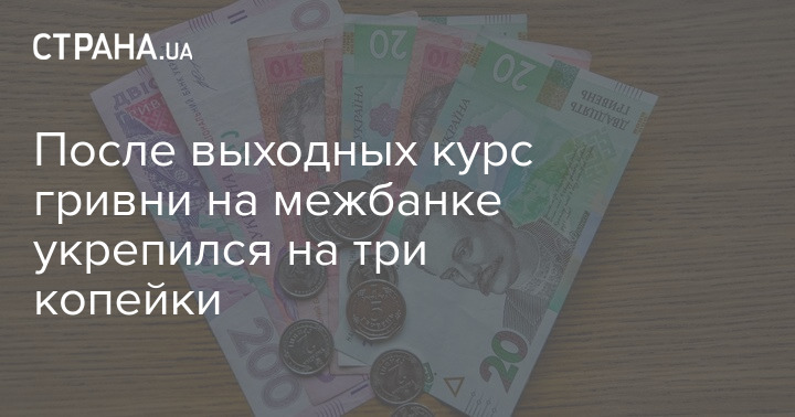 В первый рабочий день недели, 19 июля, на межбанковском валютном рынке курс гривни укрепился на три копейки - до 27,210 грн за один доллар с 27,245 грн/$1 перед выходными.