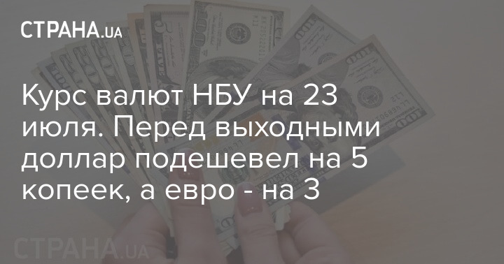 Национальный банк Украины (НБУ) в пятницу, 23 июля, установил официальный курс гривны по отношению к иностранным валютам. По сравнению с предыдущим рабочим днем доллар и евро опустились в цене.