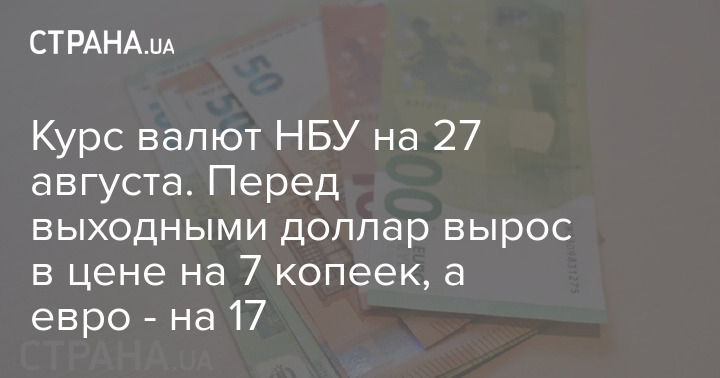 Такие данные обнародовал Национальный банк Украины, установив официальный курс валют на пятницу, 27 августа, и на ближайшие выходные дни.