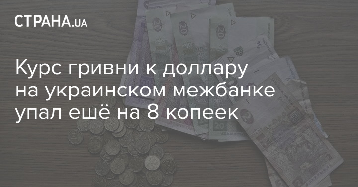 Курс гривни к доллару на украинском межбанке упал ешё на 8 копеек
