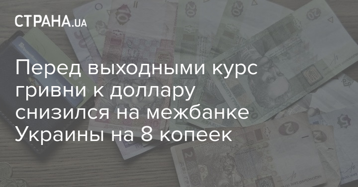 Перед выходными курс гривни к доллару снизился на межбанке Украины на 8 копеек
