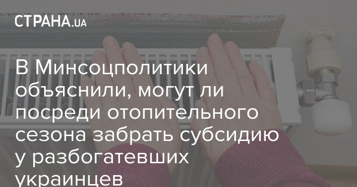 По словам министра, посреди отопительного сезона украинцев, у которых вырос доход, не будут автоматически лишать субсидии. Однако увеличение дохода повлияет на то, назначат ли субсидию в следующем отопительном сезоне.