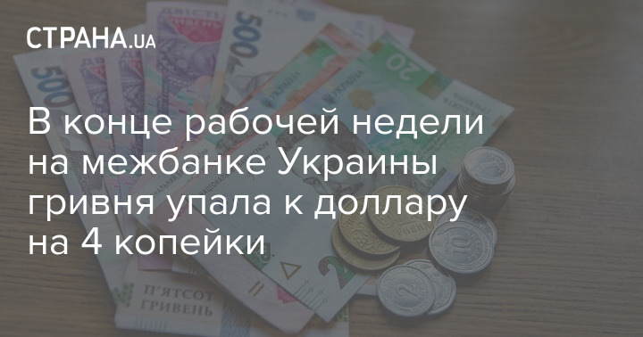 В конце рабочей недели на межбанке Украины гривня упала к доллару на 4 копейки