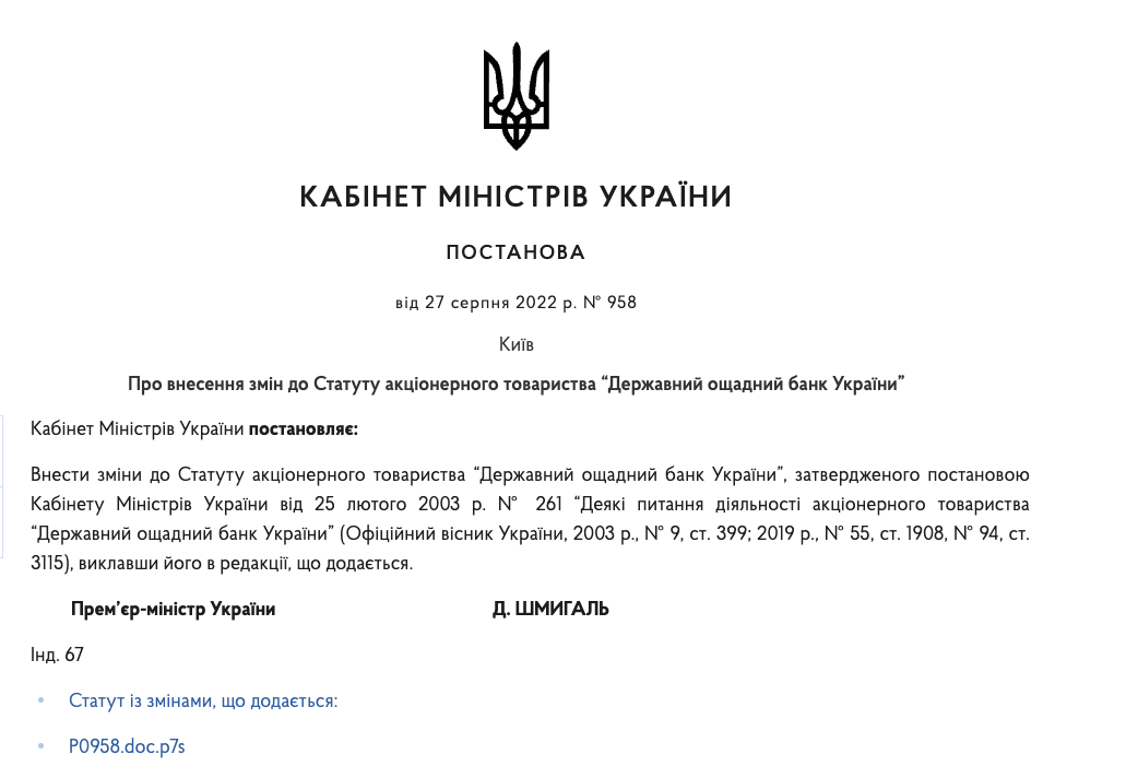 Кабмин официально отменил государственные гарантии по депозитам физлиц в государственном Ощадбанке, которые действовали с момента его основания в декабре 1991 года.