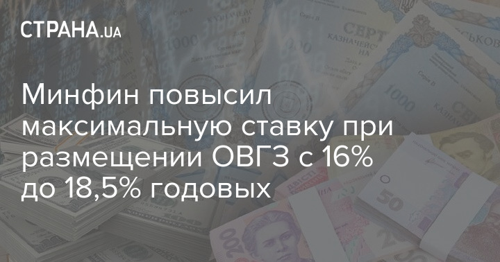 Минфин впервые за долгое время повысил максимальную ставку при размещении новых выпусков облигаций внутреннего госзайма — с 16% до 18,5% годовых. Это подтверждается результатам сегодняшнего размещения ОВГЗ: правительство продало 5 выпусков гривневых гособлигаций на общую сумму 5,8 млрд грн и 2 выпуска в долларе на $312,2 млн.