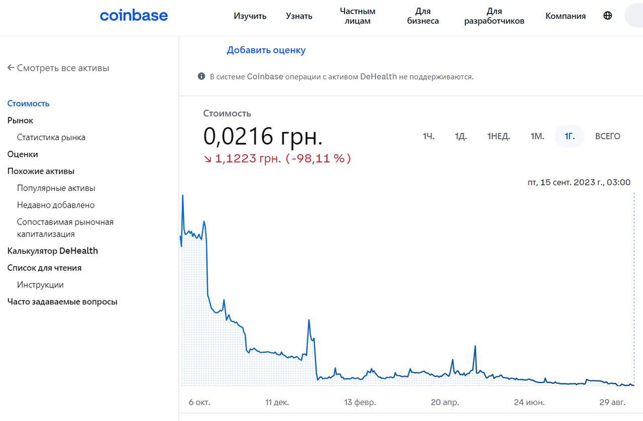 Отметим, что инвесторы действительно сильно погорели на токенах DHLT. Если год назад, в середине сентября 2022-го, токен DHLT стоил еще 1,2 грн, то к 15 сентября 2023 года его ценник скатился до 2 копеек (0,02 грн) — на 98,1%. Если так пойдет и дальше, то скоро он не будет стоит ничего.
