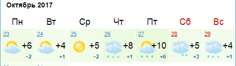 Сайт Weather.com пишет, что в понедельник-четверг ожидается температура +5...+7 днем и -2...+5 ночью. Далее днем обещают +8...+9 и +2...+5 ночью. В четверг возможен дождь, в пятницу и воскресенье - проливной дождь.