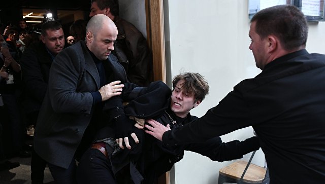 Сотрудники охраны быстро задержали нарушителя порядка и вывели из зала. Сама Собчак назвала этот инцидент провокацией.