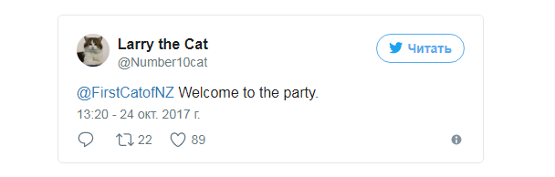 Свою "коллегу" из Новой Зеландии уже поприветствовал кот Ларри, живущий в резиденции премьер-министра Великобритании на Даунинг-стрит.