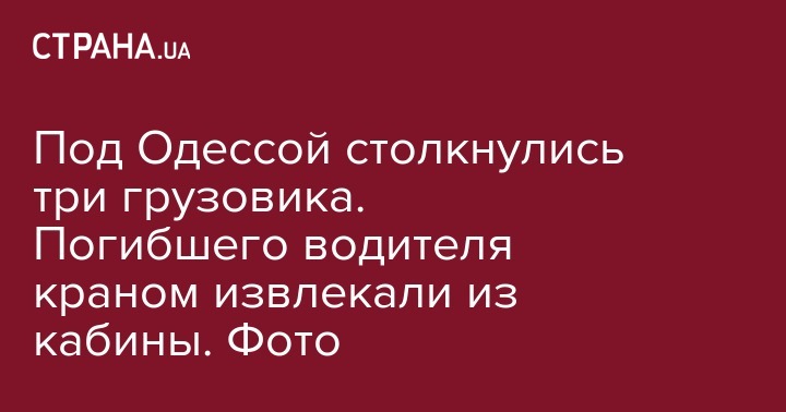 Под Одессой столкнулись три грузовика. Погибшего водителя краном извлекали из кабины. Фото
