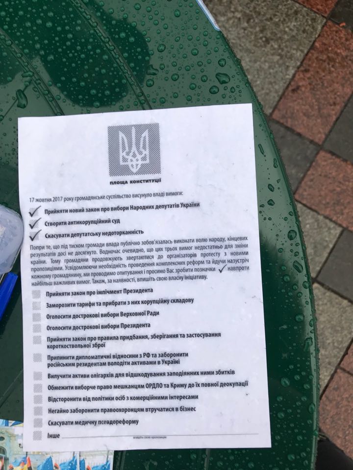 За эти требования им даже предложили проголосовать. Такие анкеты раздали митингующим: