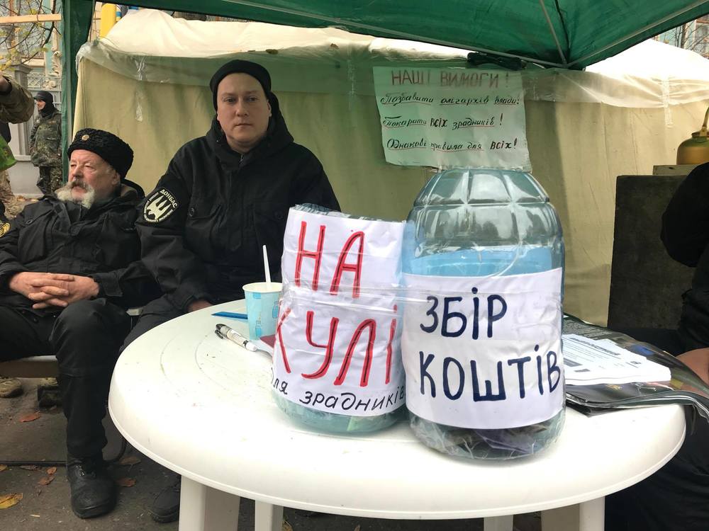 12:16 Через полторы недели среди палаток на улице Грушевского появилось много обьявлений для пожертвований. "На кулі для зрадників".
