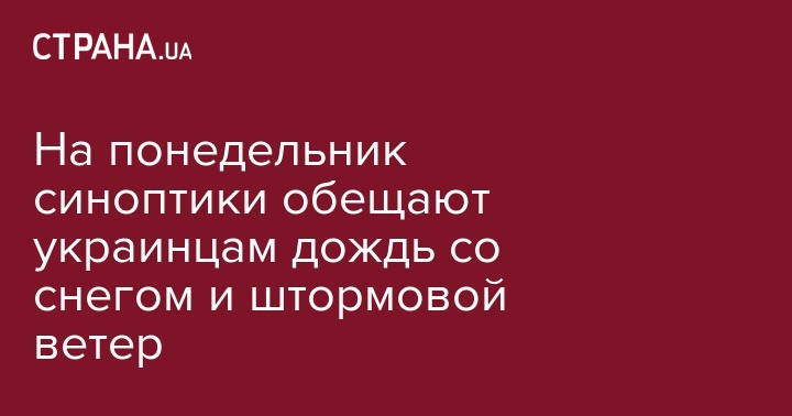 На понедельник синоптики обещают украинцам дождь со снегом и штормовой ветер