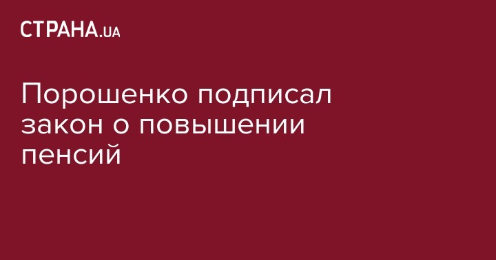 Президент Петр Порошенко подписал закон "О внесении изменений в Бюджетный кодекс Украины относительно повышения пенсий", который был принят парламентом за основу и в целом 3 октября. Об этом сообщает пресс-служба главы государства.
