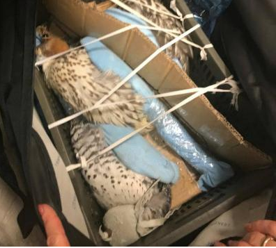 В аэропорту "Борисполь" пограничники обнаружили трех соколов, которых украинец пытался вывезти в ОАЭ. Об этом сообщает пресс-служба Госпогранслужбы.