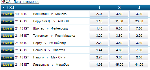 Так например, авторитетная британская William hill не верит в то, что голландцам удастся увезти из Харькова хотя бы ничью. Ставки на победу Фейенорда тут принимают с коэффициентом 7,50. Ничья оценивается кэфом в 5,00, а вот на победу "горняков" коэффициент - 1,40.