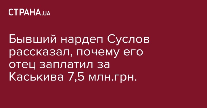 Отец экс-депутата Евгения Суслова, владелец фермерского хозяйства Иван Суслов заплатил почти 7,5 миллионов гривен залога за Владислава Каськива.