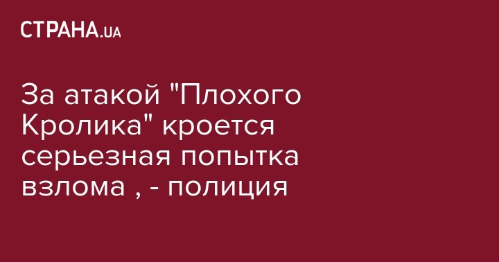 До этого в киберполиции сообщили, что количество загруженных украинцами инфицированных вирусом "BadRabbit" обновлений составляет всего 12% от общих загрузок по всему миру. Работники киберполиции установили, что в коде "BadRabbit" были обнаружены отсылки к фэнтезийному телесериалу "Игра престолов".