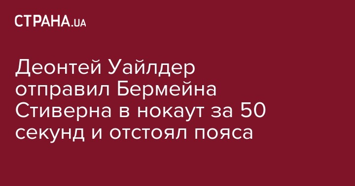 Деонтей Уайлдер отправил Бермейна Стиверна в нокаут за 50 секунд и отстоял пояса