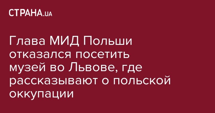 Министр иностранных дел Польши Витольд Ващиковский отказался посетить во Львове Национальный музей-мемориал жертв оккупационных режимов "Тюрьма на Лонцкого" из-за позиции руководства о том, что Польша оккупировала Западную Украину в 1918 году. Об этом сообщил директор музея Руслан Забилый на своей странице в Facebook.