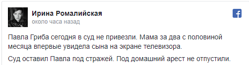 "Суд оставил Павла под стражей. Под домашний арест не отпустили", - написала журналистка.