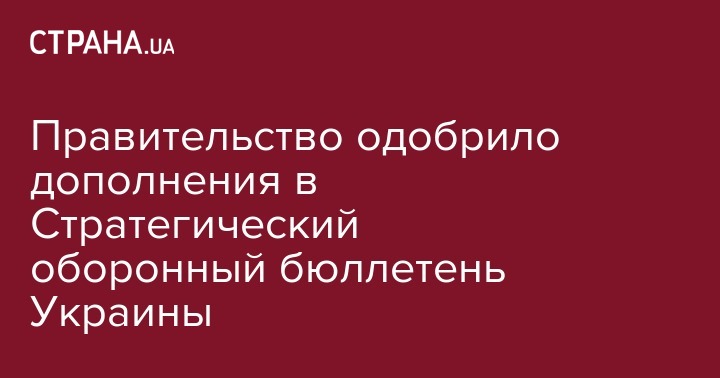 Кабинет министров Украины на заседании в среду принял проект указа президента "О внесении изменений в дополнение 1 к Стратегическому оборонному бюллетеню Украины", сообщается на официальном сайте Министерства обороны.