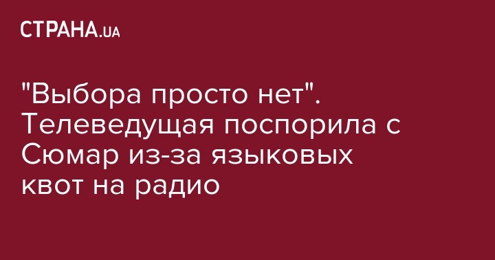 "Оказалось, что украинская песня более привлекательна и люди не переключают радиостанцию, когда слышат родные песни на родном языке...", - говорила Сюмар, когда ее перебила ведущая, заявив, что некуда больше переключать, - "выбора просто нет, кроме интернет-радиостанций".