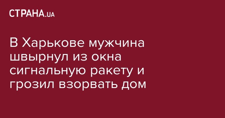 В Харькове из окна собственной квартиры злоумышленник бросил сигнальную ракету. По словам жены, он употребляет наркотики и алкоголь. На место инцидента были вызваны полицейские, после чего хулиган закрылся в квартире, открыл газ и стал угрожать, что взорвет дом.