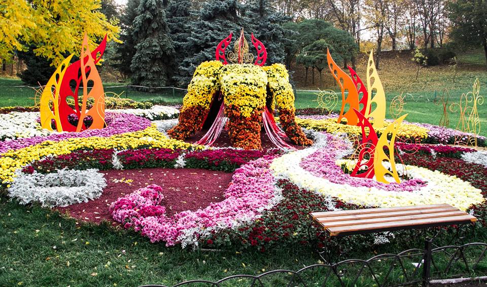 4 октября в столице открылась осенняя выставка хризантем. На выставке под названием "Фантастические истории" на площади 3 700 кв. м сотрудники "Киевзеленстроя" из 25 тыс. цветов создали десять необычных цветочных композиций.