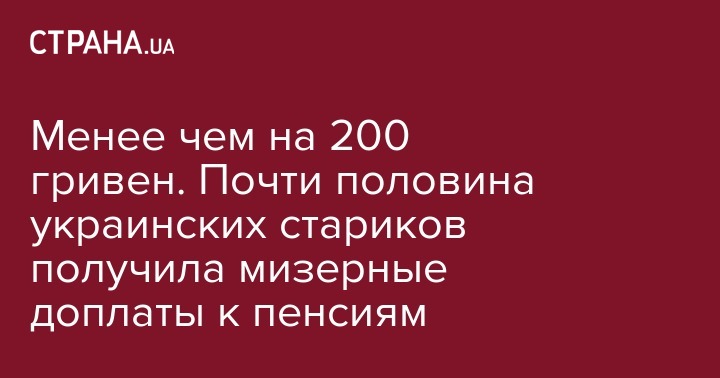 Почти у половины украинских пенсионеров пенсия увеличилась менее чем на 200 грн. Об этом говорится в сообщении Пенсионного фонда Украины в ответ на запрос "УНН".
