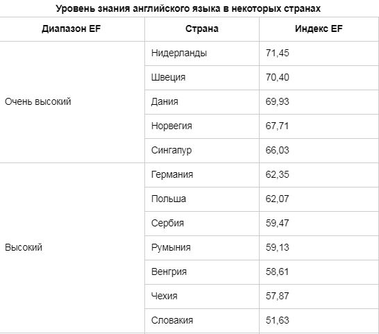 Разумеется, оценки EF не являются социологически достоверными, но некоторое представление о практическом владении английским в конкретной стране они дают.