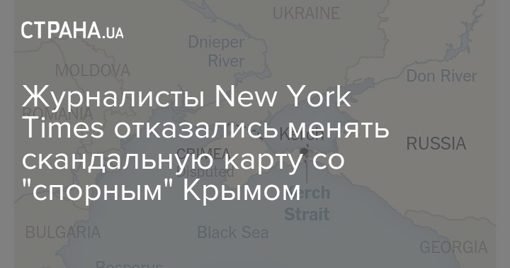 Использованная в статье одного из самых представительных изданий США - The New York Times карта с аннексированным Крымом, помеченным в американском издании уже как "спорная территория в составе России", меняться не будет. На позицию американской газеты не повлияла даже критика со стороны Министерства иностранных дел Украины.