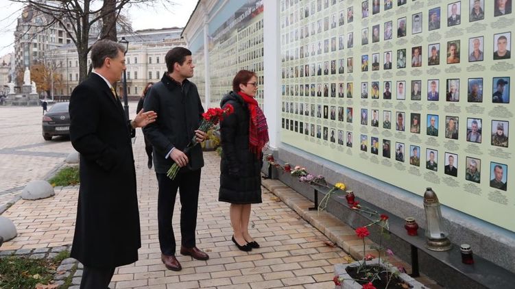 Американский дипломат назвал стену памяти "первым местом, где он побывал в Украине". Их процитировало Посольство США в Украине.