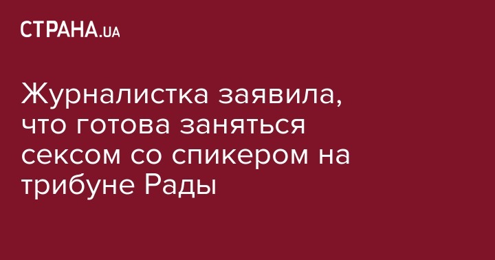 Украинская журналистка Ярослава Коба заявила о желании заняться сексом на трибуне Верховной рады с ее председателем, которым, как она надеется, к моменту интима перестанет быть спикер Андрей Парубий.