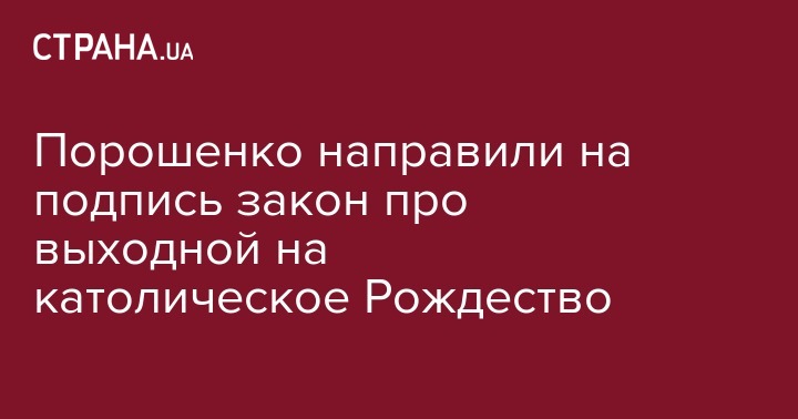 Порошенко направили на подпись закон про выходной на католическое Рождество
