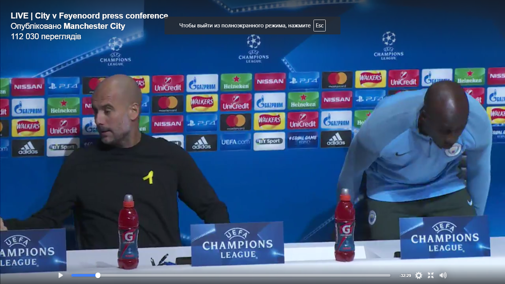 Главный тренер "горожан" Хосеп Гвардиола (бывший тренер "Барселоны" - ред.) на традиционную предматчевую пресс-конференцию пришел с желтой лентой на свитере. Таким образом он  выразил публичную поддержку  политическим заключенным Каталонии.