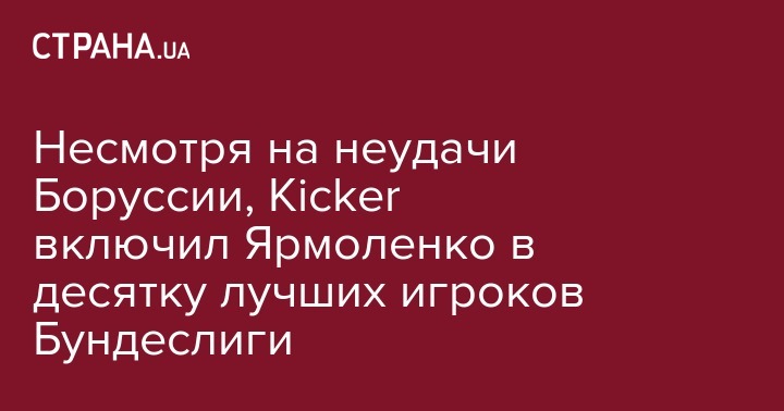 Несмотря на неудачи Боруссии, Kicker включил Ярмоленко в десятку лучших игроков Бундеслиги