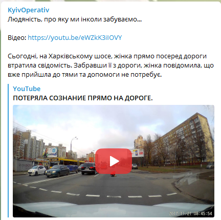Появилось видео, как очевидцы спасли женщину, которая потеряла сознание прямо посреди дороги в Киеве