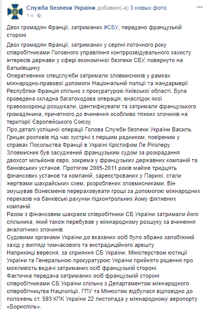Сегодня, 22 ноября, двое французов, задержанных в августе сотрудниками СБУ, возвращены на родину. Об этом сообщает пресс-служба СБУ.