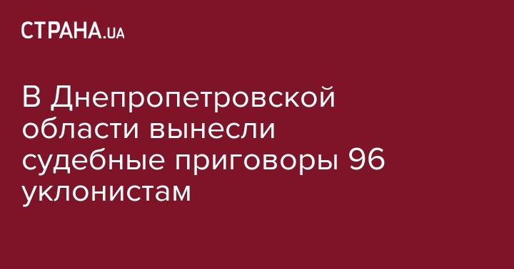 В Днепропетровской области вынесли 96 приговоров касательно лиц, уклоняющихся от призыва на срочную воинскую службу. Об этом на пресс-конференции в Днепре сообщил заместитель военного комиссара областного комиссариата Сергей Полуцыган, передает "Интерфакс-Украина".