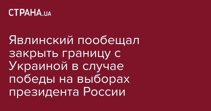 Кандидат на пост президента России и один из основателей партии "Яблоко" Григорий Явлинский заявил, что в случае победы он прекратил бы антиукраинскую пропаганду в России. Также он хочет закрыть границу с Украиной и решить проблему аннексированного Крыма, передает РИА Новости.