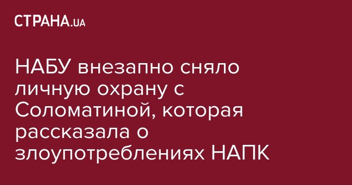 Национальное антикоррупционное бюро (НАБУ) сняло охрану с руководителя департамента финансового контроля и мониторинга способа жизни Анны Соломатиной, которая обвинила свое начальство в фальсификации проверок е-деклараций. Об этом сообщили в пресс-службе НАБУ, передают "Украинские новости".