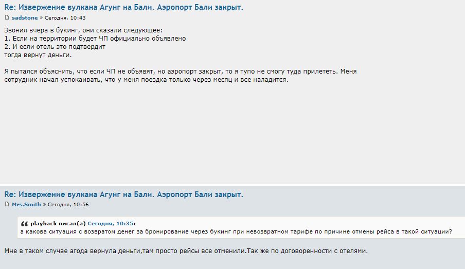 На русскоязычном форуме Бали пользователи делятся историями по обмену билетов.