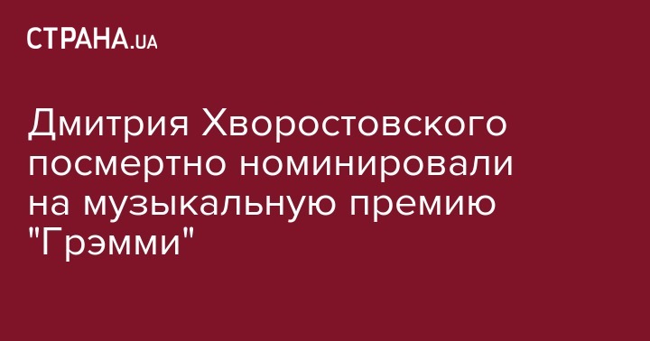 Оперного исполнителя Дмитрия Хворостовского посмертно номинировали на премию "Грэмми" в номинации "Лучший классический сольный вокальный альбом". Об этом сообщает американский развлекательный еженедельник Variety.