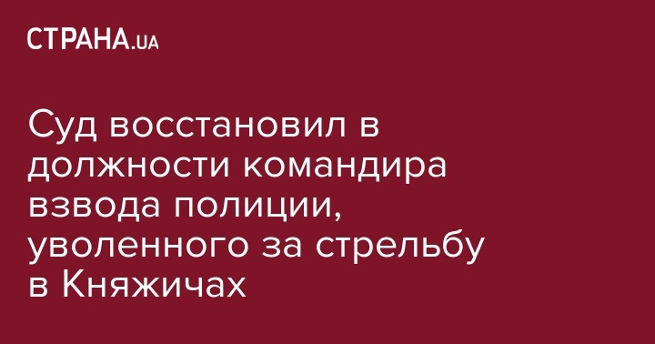 Окружной административный суд Киева восстановил в должности командира взвода охраны полиции, которого уволили за причастность к перестрелке в Княжичах, в Киевской области в декабре 2016 года. Об этом говорится в постановлении суда.