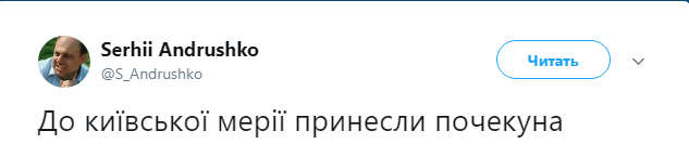 К зданию Киевской госадминистрации на Крещатике уже принесли памятник "Ждуна коммунальных услуг". Об этом сообщил в Twitter журналист Сергей Андрушко, опубликовав соответствующее фото.
