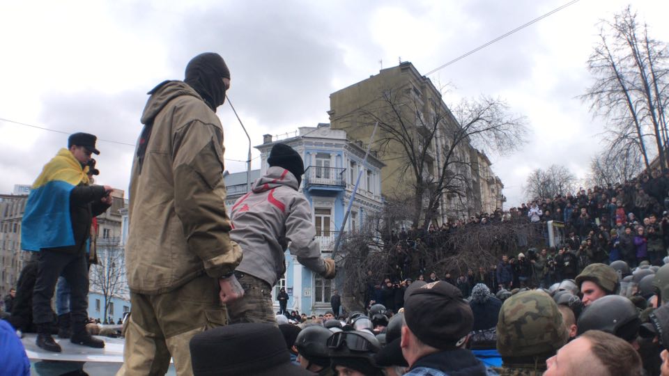 Тем временем на улице страсти накалялись. На улице начались столкновения между сторонниками Саакашвили и спецназом. Один из участников акции даже угрожал поджечь себя, если лидера РНС не отпустят.